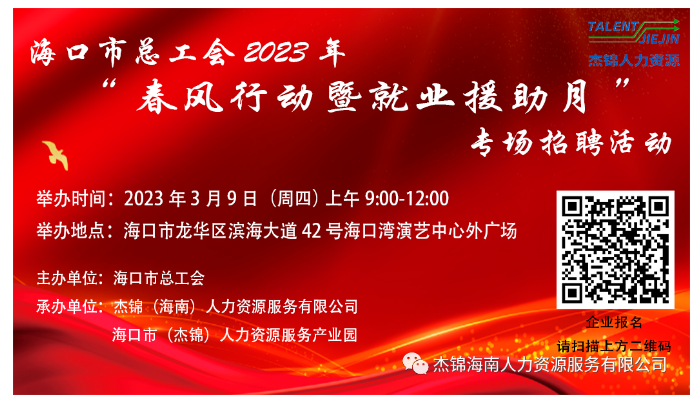 6月24日上午9時-12時,由海口市龍華區人力資源和社會保障局、海口市(龍華)人力資源服務產業園主辦,杰...
